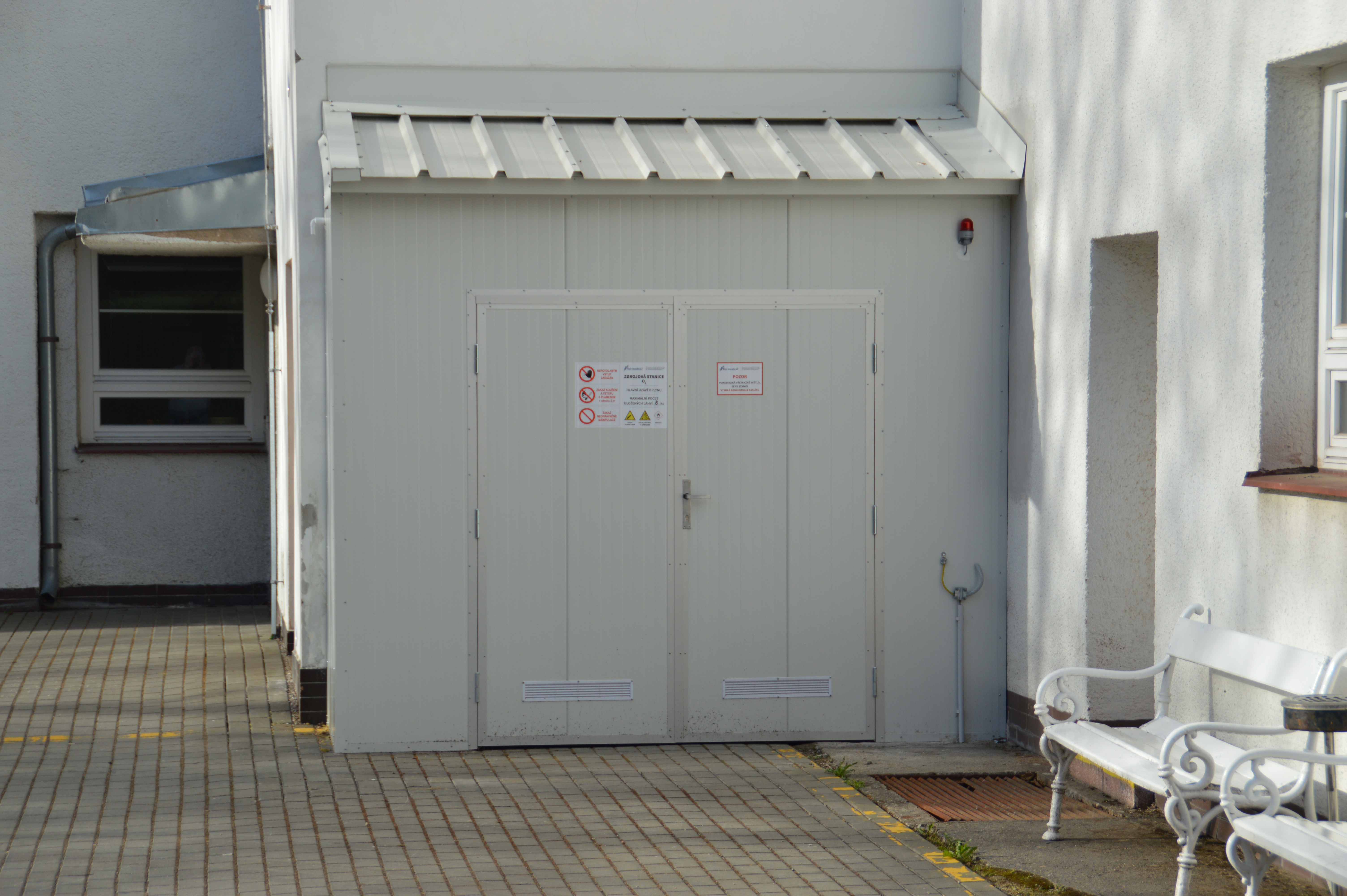 přístřešku pro skladování kyslíku na zpevněné ploše zadního traktu pavilonu 2 v areálu Psychiatrické nemocnici Jihlava. Tento přístřešek byl současně i přikotven na zeď skladu u zadního vstupu do objektu.